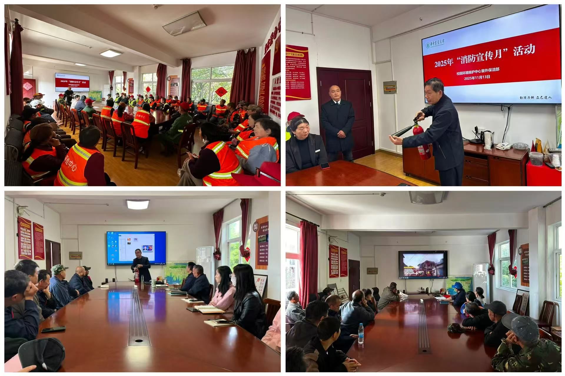 为落实全国消防宣传月和后保部安全工作要求,进一步提升员工消防安全意识和应急处置能力、筑牢安全防护网,近期,校园环境维护中心紧扣“全民消防、生命至上---安全用火用电”活动主题,结合中心安全管理实际,组织开展了一系列消防安全宣传教育活动,不断营造“人人学消防、懂消防、守消防”的浓厚氛围。