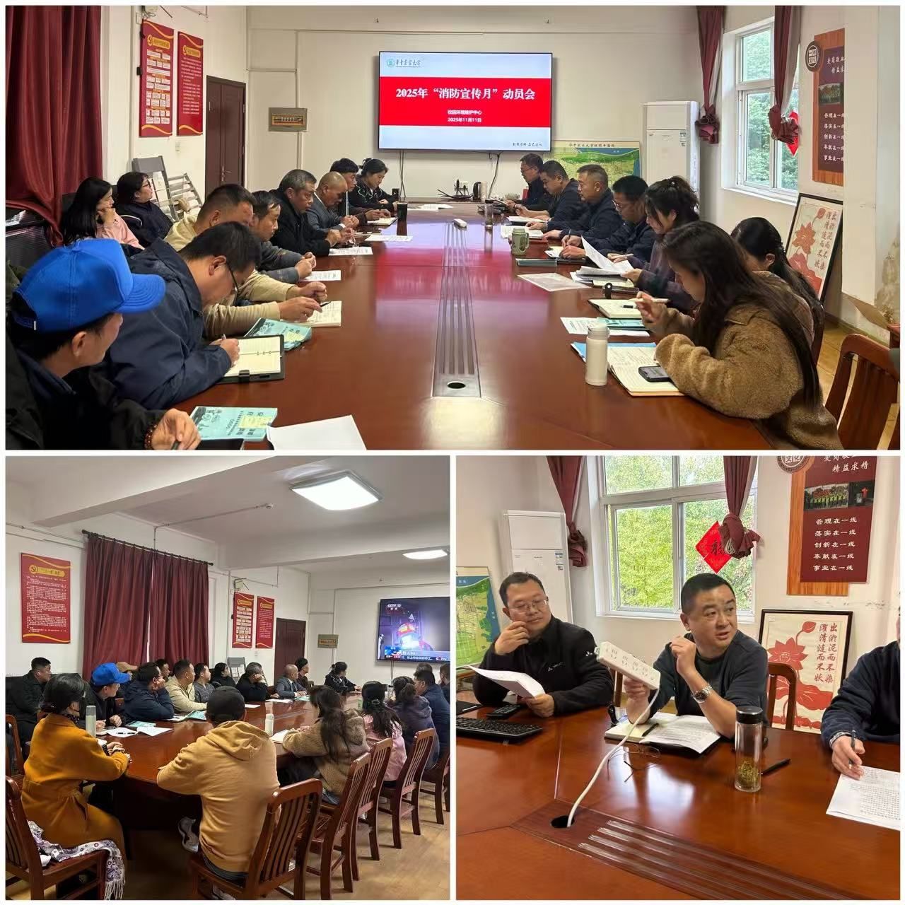 11月6日下午两点三十,中心组织管理骨干、网格长在三楼会议室召开消防安全专题培训。刘凡主任带领全体员工学习习近平总书记关于消防工作的重要指示批示精神核心内容等文件,结合典型案例对各岗位安全风险及詹家山宿舍区用电安全进行讲解,并观看消防安全警示教育片,进一步提高员工对消防安全的认识,防控安全风险。